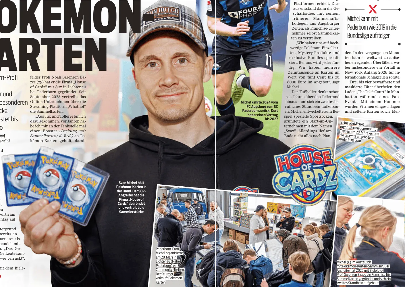米歇尔的业余生活远不止于此,他已经开始着手第二份事业:作为一名前职业足球运动员,他和诺亚-萨伦伦-巴泽(29岁)共同创立了“卡牌之家”(House of Cardz)公司,公司位于帕德博恩附近的利希特瑙。